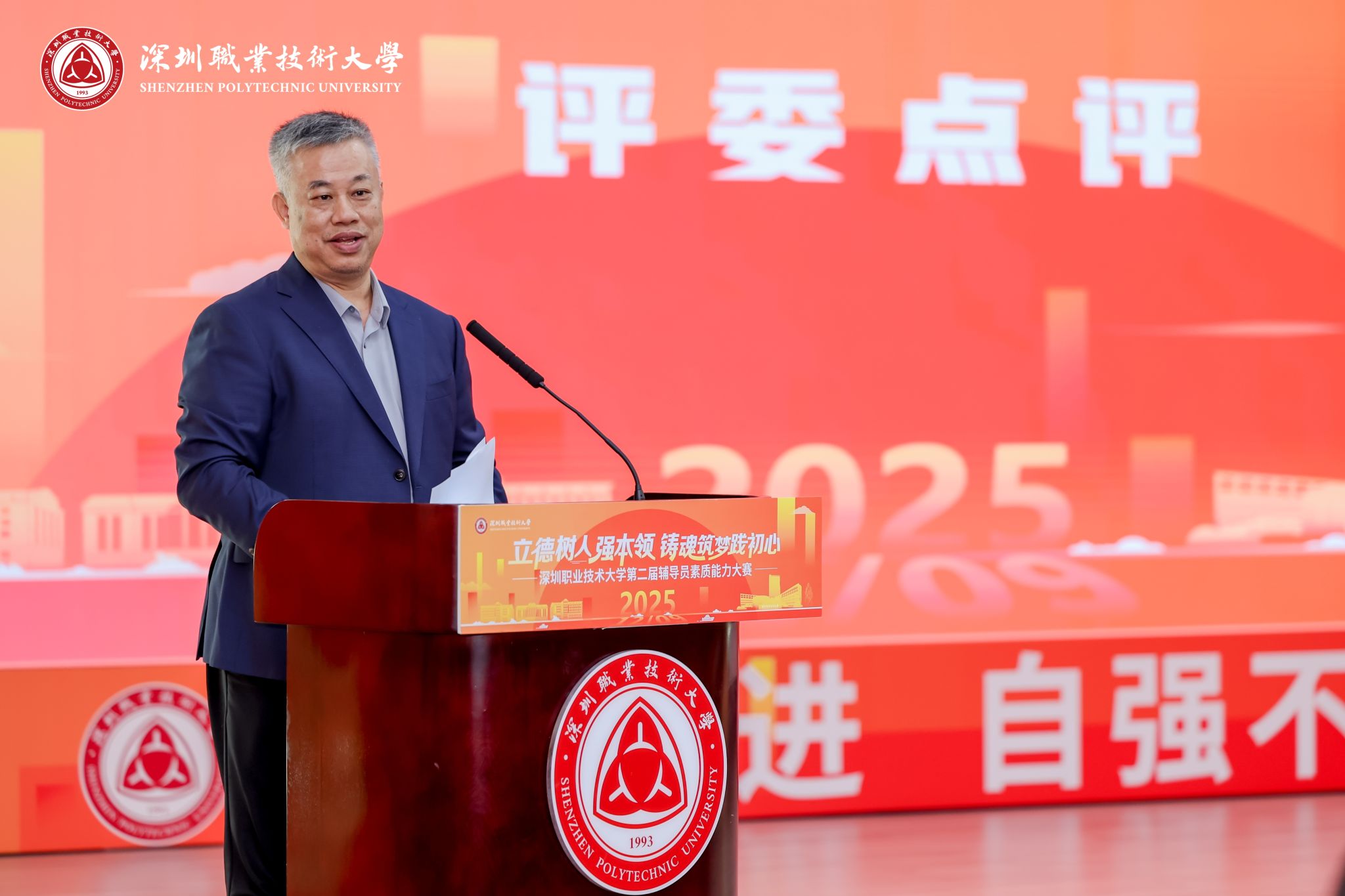 为深入学习贯彻习近平新时代中国特色社会主义思想,全面贯彻落实党的二十大、二十届四中全会和中共中央国务院《关于加强和改进新形势下高校思想政治工作的意见》《普通高等学校辅导员队伍建设规定》(教育部令第43号)等会议、文件和习近平总书记在全国高校思想政治工作会议重要讲话精神,推动辅导员队伍建设和学生思想政治工作高质量发展,全面考察和展示我校辅导员队伍的理论水平、职业能力和专业素养,学校于2025年11月至12月组织开展深圳职业技术大学第二届辅导员素质能力大赛。
